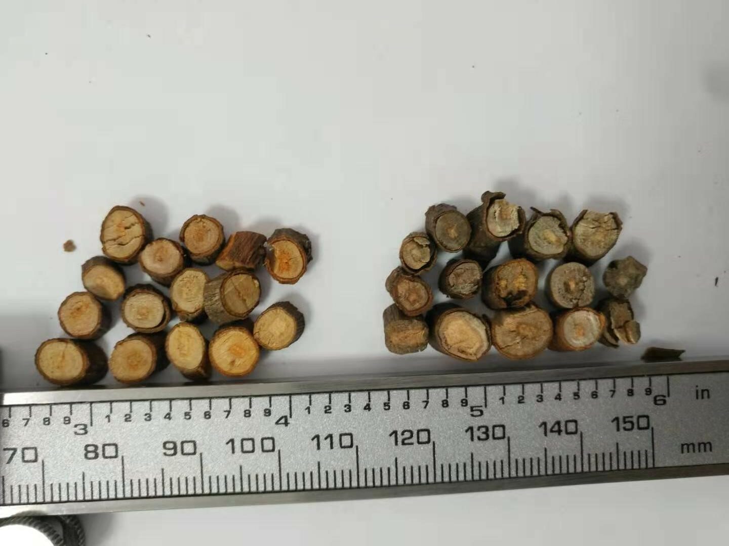 (图中左边为不合格之桂枝,右边为合格桂枝)