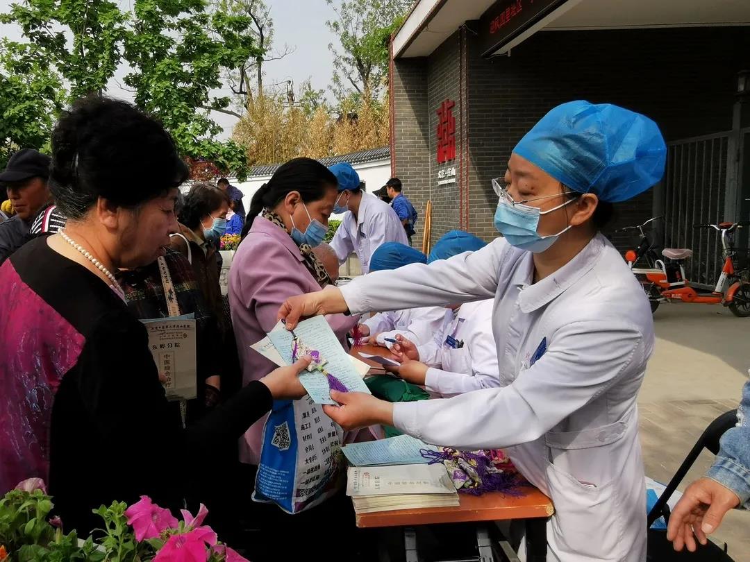 工作台前,医务工作人员一边测量血压,一边为居民讲解日常有关血压的保健常识。特意为周边广大居民发放中药香囊,提供穴位敷贴。
