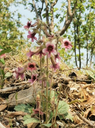 孩子因为看到这花的形状像喇叭,所以称它为“小喇叭”。但实际上它的名字叫“地黄”。她是开在路旁、山丘上随处可见的野花,也是临床上应用广泛的中草药。关于地黄名字的由来,我听说过两种说法,都与它的自身特性相关。一说“黄”字源于此草最宜生于黄土地中;一说是因为它的根茎为黄色。