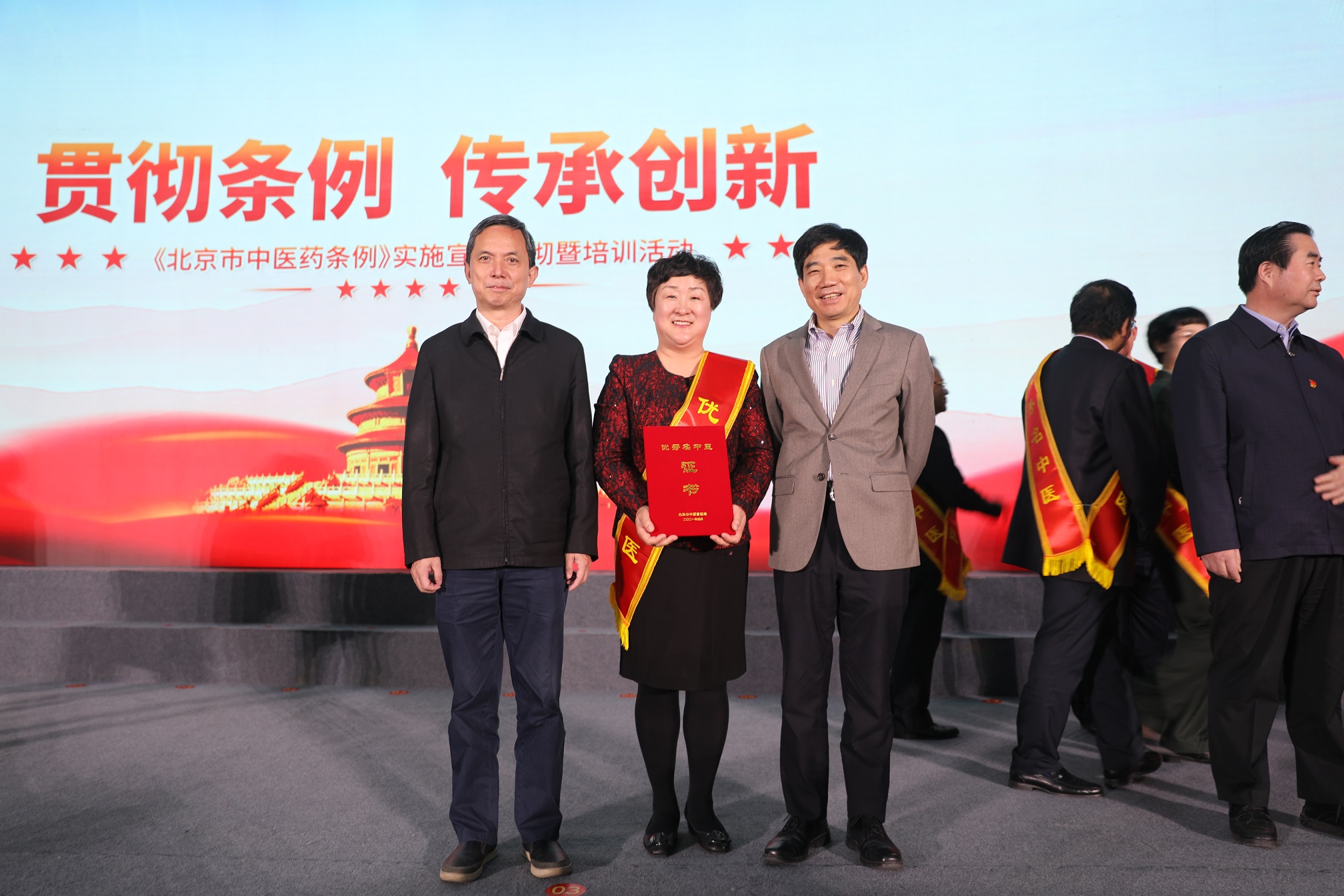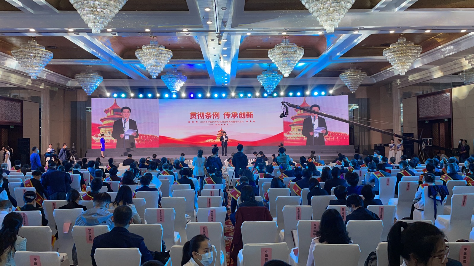 2021年4月30日下午,“贯彻条例 传承创新”《北京中医药条例》实施宣传贯彻暨培训活动在北京会议中心隆重举行。北京市中医管理局在全市范围开展名中医宣传工作,树立先进典型,表彰北京名中医,促进中医药事业依法发展。国家中医药管理局、市人大、市政府领导、市各级卫生健康系统领导、代表、200余名名老中医代表及弟子参加会议。