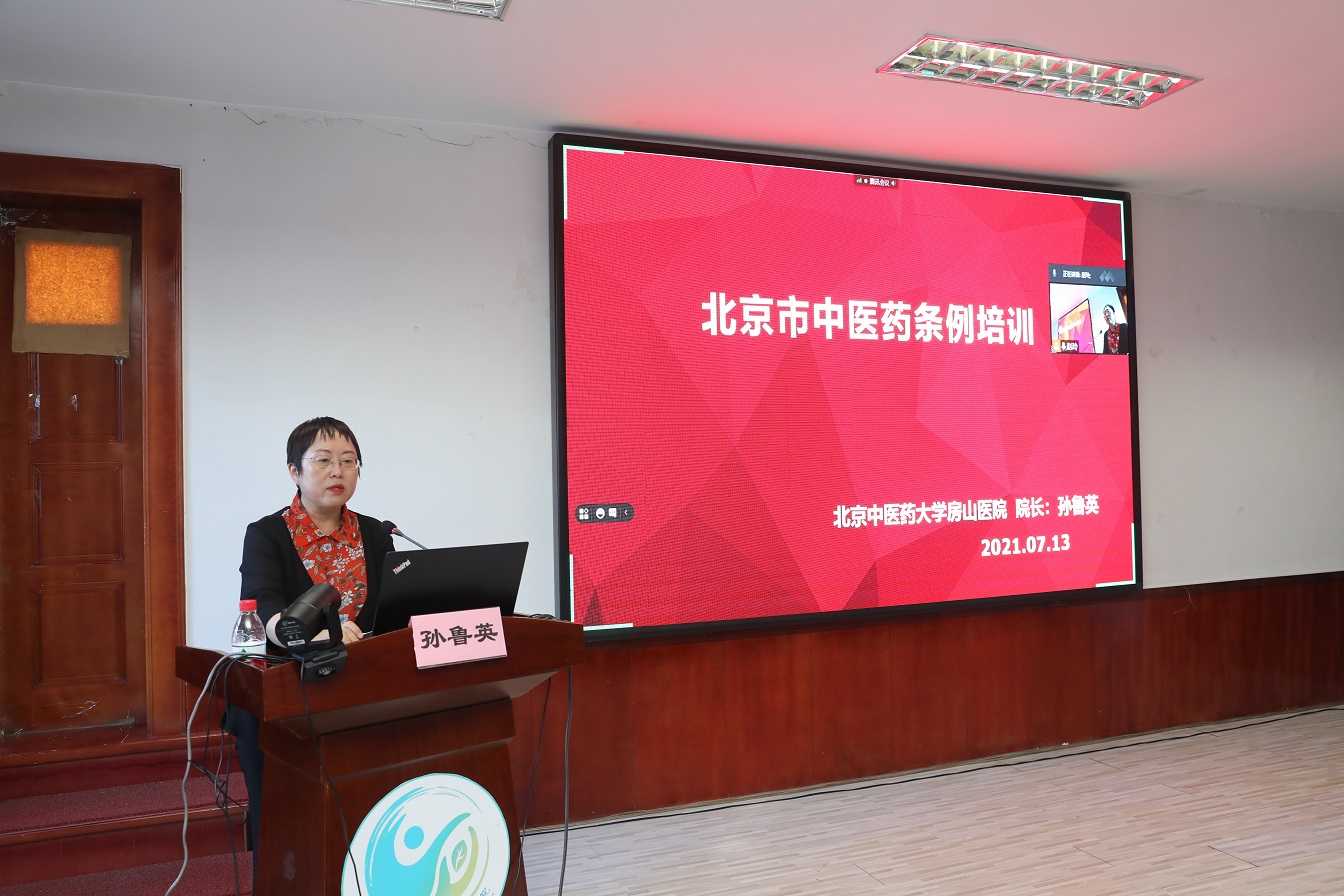 2020年11月27日,北京市第十五届人民代表大会常务委员会第二十六次会议通过《北京市中医药条例》(以下简称《条例》),自2021年5月1日起施行。为进一步推进《条例》的贯彻落实,提高医院中医药管理服务工作法制化水平,7月13日下午,由孙鲁英院长就《条例》开展专题学习培训,院领导班子成员、中层干部在西二楼会议室现场参会,其余医务人员均通过线上同步参会学习。
