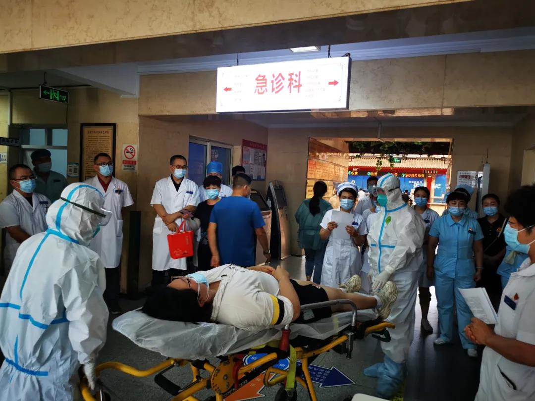 下午两点演习正式开始, 全程模拟了预检分诊、隔离救治,病员转运及终末消毒等四个场景。重点考察急诊科医护人员对流行病学调查、新冠肺炎筛查、院感防控、孕产妇救治、流程上报及多学科协同会诊救治、转院等救治流程及环节的应急反应能力和医疗诊治效率。参演人员依照实战准备参与其中,严肃认真、紧张有序地完成了整个演练过程。