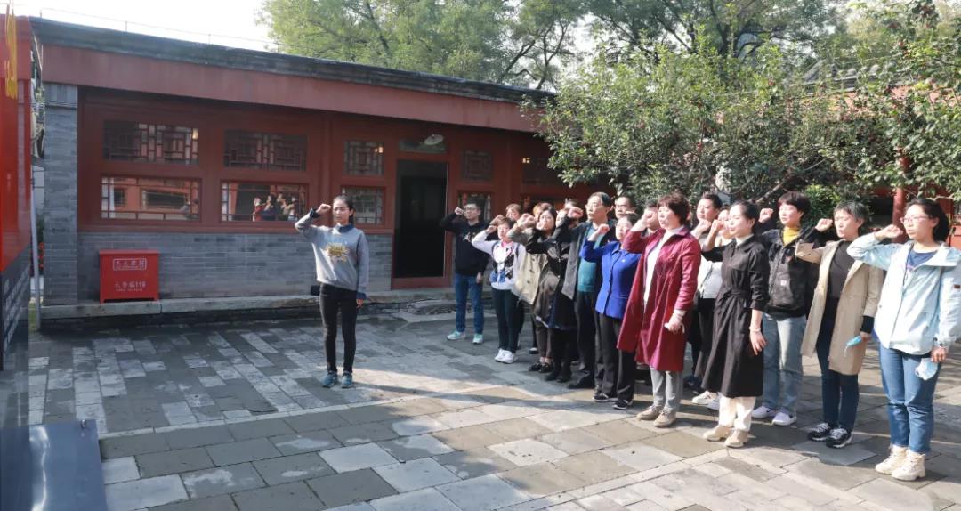 北京李大钊故居院内,海棠依旧,似乎穿越时空,回眸那段风云岁月。全体党员在鲜红的党旗前,重温入党誓词,再次接受心灵的洗礼,全体党员同志们以高昂、奋进而又庄严的誓词表达着对党的忠诚与无限热爱。