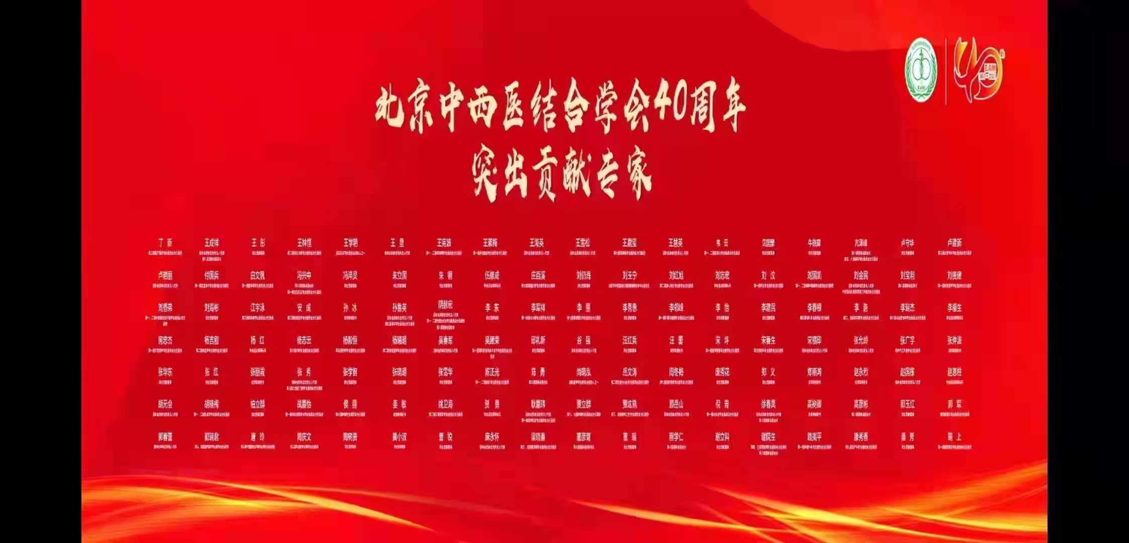 2021年10月23日北京中西医结合学会线上举办了建会40周年庆祝活动。庆祝活动上对为了我国中西医结合事业和北京中西医结合学会发展做出突出贡献的先进集体和个人进行了表彰。北京中医药大学房山医院被评为优秀团体会员单位,孙鲁英教授担任主任委员的北京中西医结合学会老年医学专业委员会被评为优秀专业委员会,孙鲁英教授和张红主任医师荣获突出贡献专家。