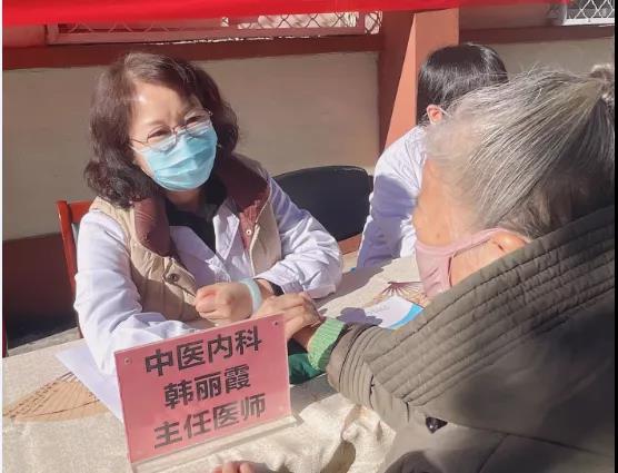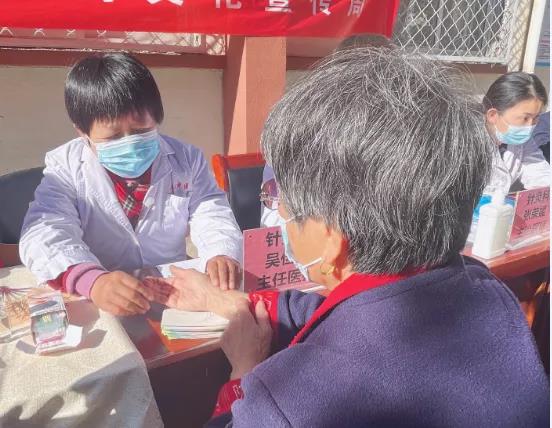 团队医务人员仔细的为患者测量血压,与患者面对面的交流,解答他们的疑问,向患者普及健康知识,增强疾病的中医药预防意识,提高身体健康,尤其对秋冬季多发病、地方病的预防重点讲解。