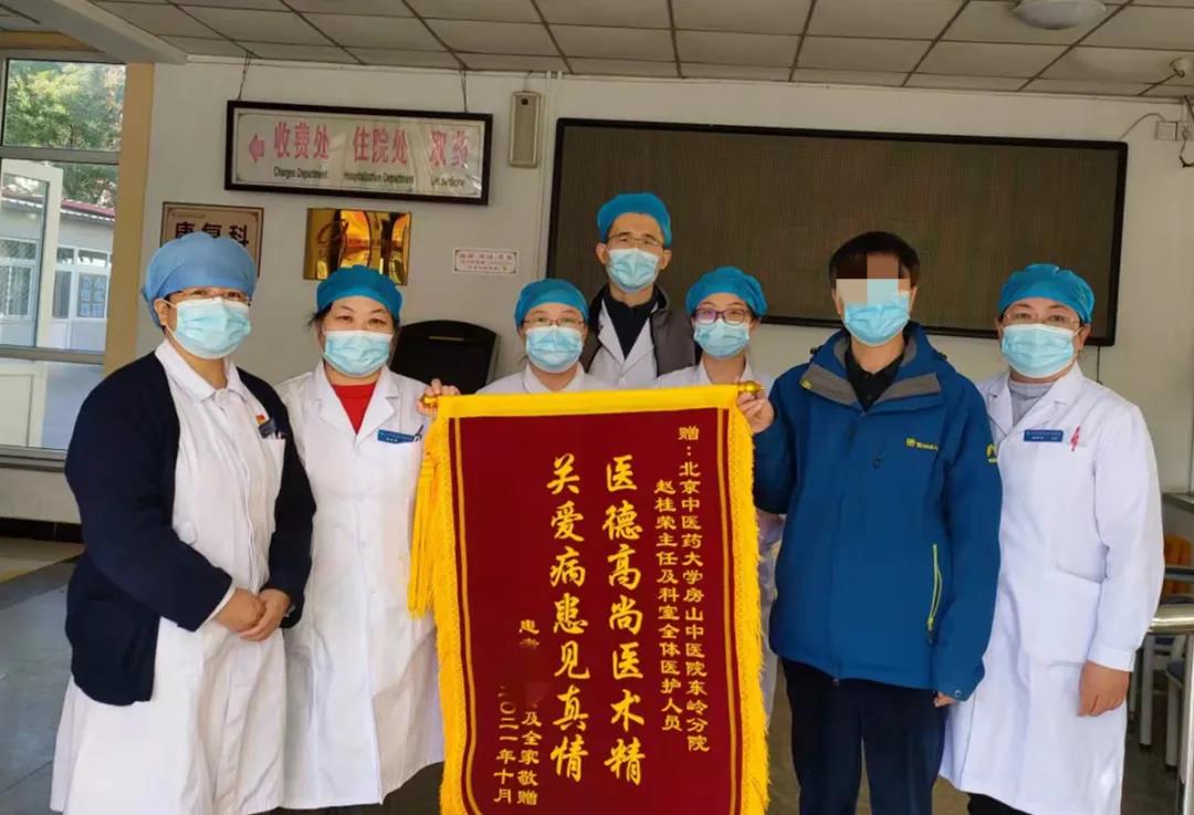 近日,患者陈奶奶的家属把一面绣着“医德高尚医术精,关爱病患见真情”的锦旗送到了北京中医药大学房山医院东岭分院赵桂荣主任及全体医护人员手中,以表达家属及患者的感激之情。