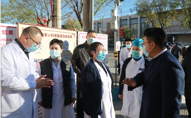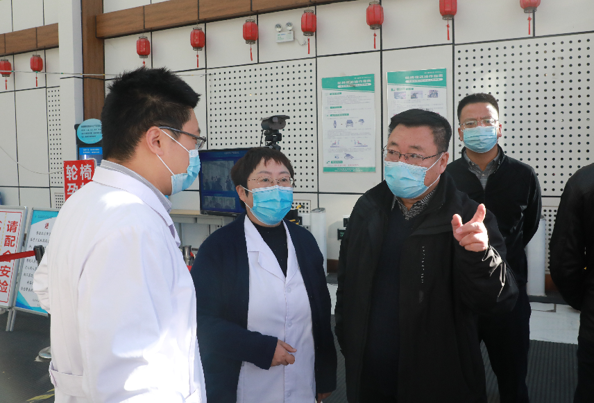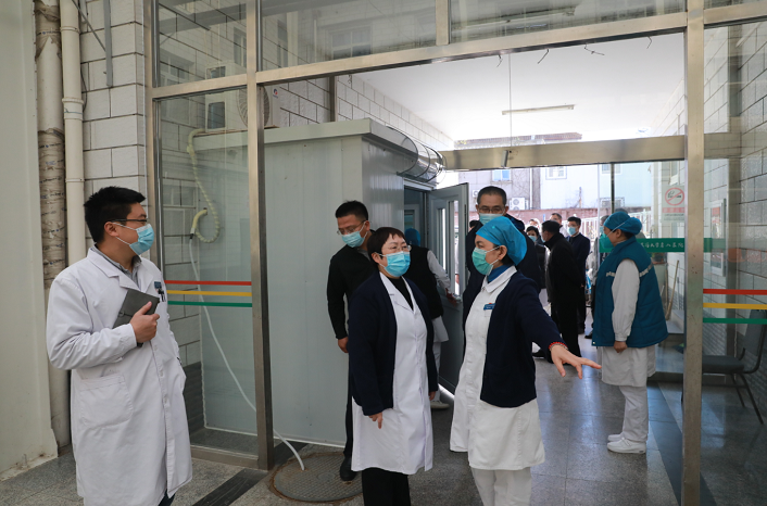 会后,党委书记郭书文、院长孙鲁英,带领全体班子成员,医务科、护理部、院感办等相关科室陪同,对院内各级筛查岗、门急诊大厅、主楼病房等部位进行防控督查。孙院长肯定了各岗位工作人员的的辛勤付出,并叮嘱强调,各级筛查岗人员要及时更新中高风险地区名单,熟练掌握流行病学史问询技巧与方法,并做好轮岗与工作对接,确保24小时应急值守,尤其是夜间等特殊时段,更要加强筛查,确保不放过任何可疑人员;病房仍要严格管理,重视患者及医护工作者的心理疏导工作,特别是ICU、监护室、长期住院的特殊患者,要做好患者及家属的病情告知和沟通解释工作,鼓励视频探视方式。各科室、部门严格遵守医院相关规章制度,确保疫情防控各项措施落实到位。