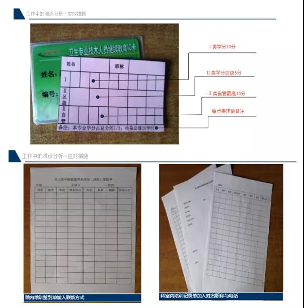 为践行“多一点”贴心服务,医院施行继续医学教育全过程管理,细化工作流程。继续教育项目从教研室申报、院级遴选、线上申报到项目实施的过程管理、课程反馈,再到项目的执行后汇报、总结等各个环节细化措施,设置相应表单,制定相关工作流程,设计学分政策卡分解卡使学员对继教管理政策理解更直观。建立教学秘书微信群、科室负责人微信群。积极参加由北京市继续医学教育委员会举办的继续医学教育培训班,并对临床科室继续教育管理员进行二次培训,把继续教育工作落到实处。