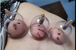 患者女性,64岁,喘憋10余年,行走时加重。加重时言语困难,气促。经过华佗夹脊区肺俞区、心俞区、膈俞区三次放血(每周一次),咳喘症状明显减轻,一次行走300至500米不再喘憋气促。