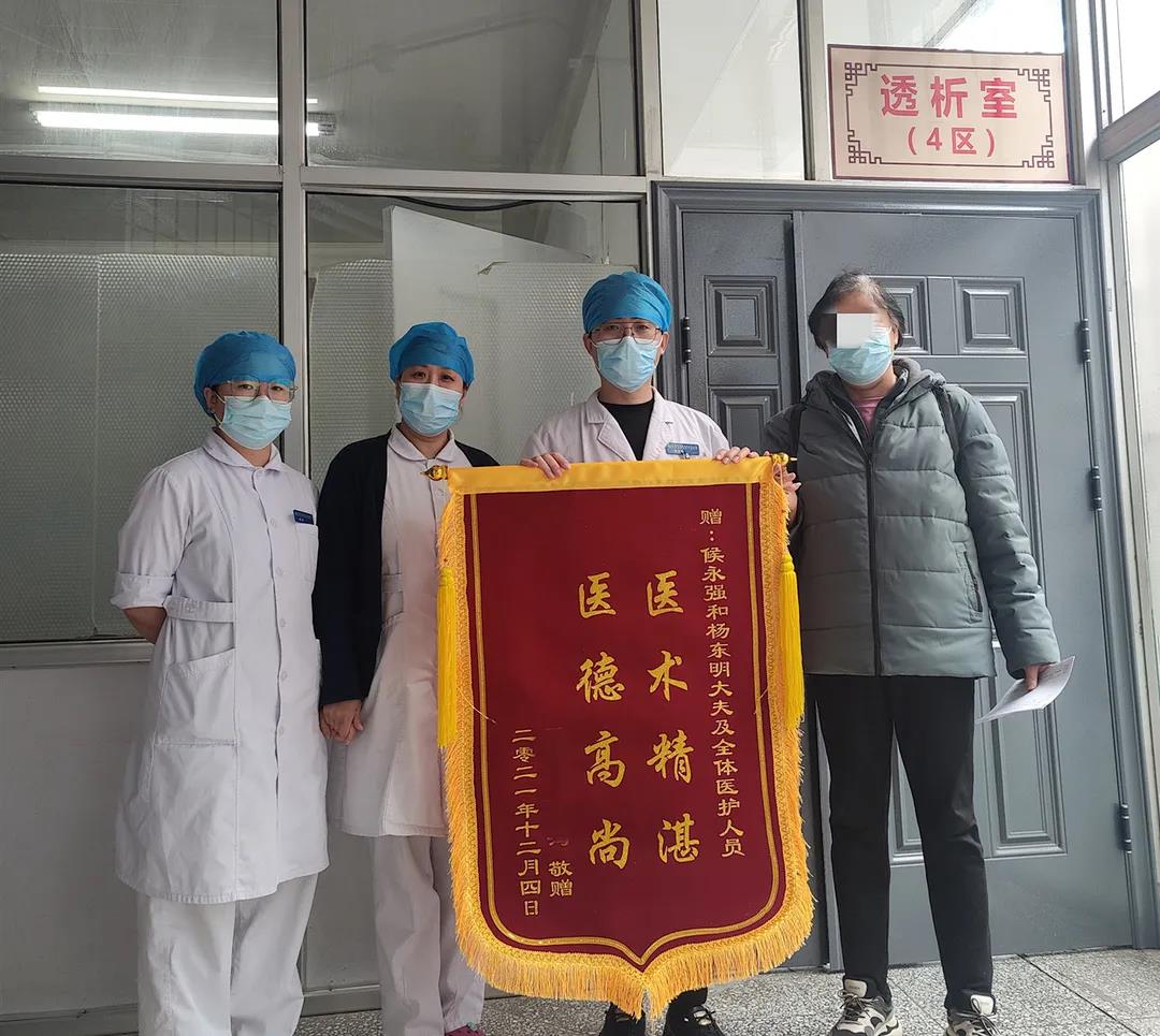 近日,一位肾友家属将一面写有“医德高尚,医术精湛”的锦旗送到透析室医护人员手上,感谢杨东明主任、侯永强大夫以及全体医护人员的高尚医德,精湛医术。还特意写了一封表扬信,表示在我院透析期间,感受到了来自医护人员对他们亲人般的关怀和温暖。