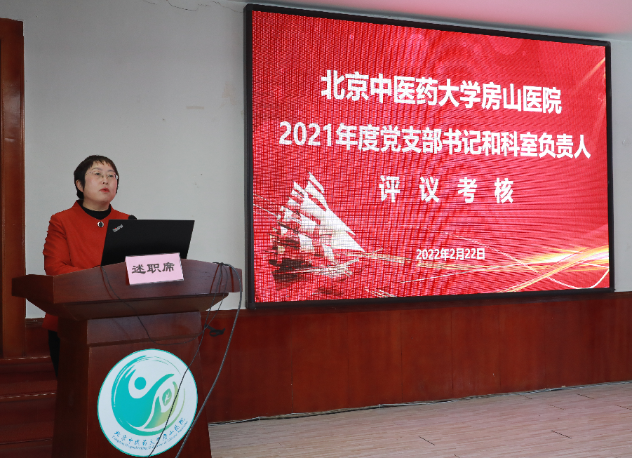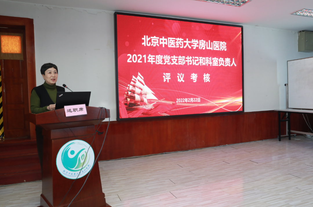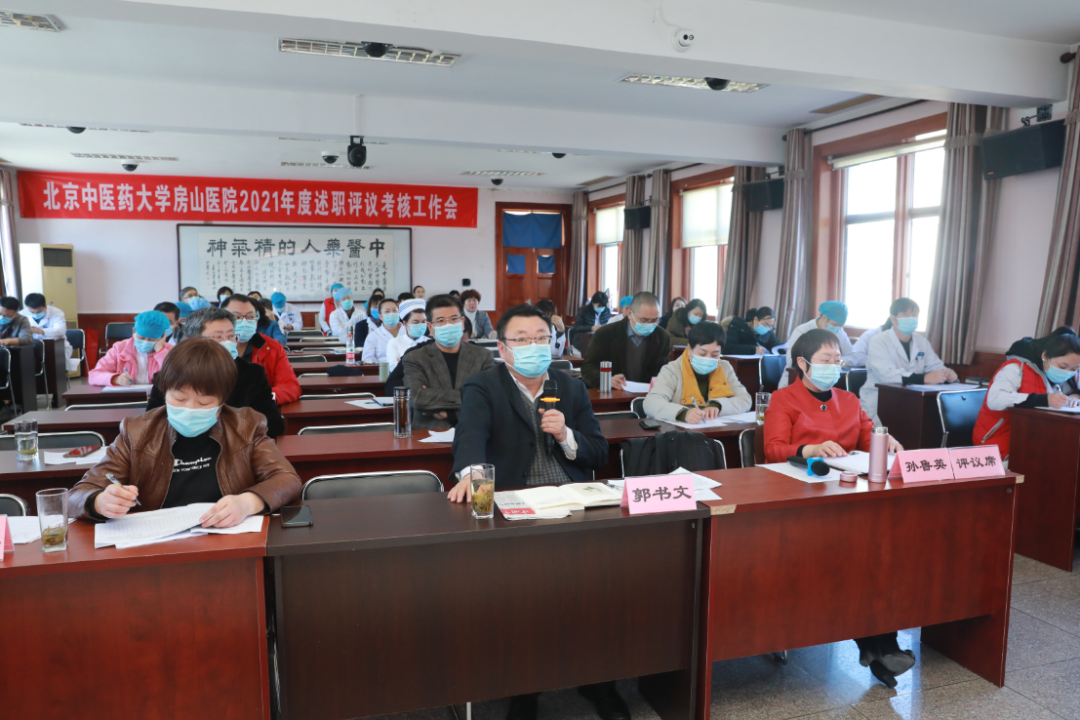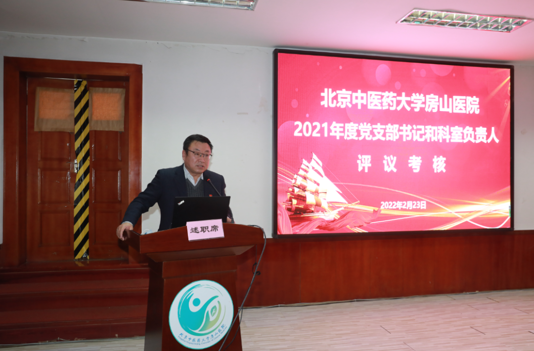 2月22日-2月23日,北京中医药大学房山医院在西二楼会议室进行2021年度党支部书记和科室负责人述职评议考核工作会。会议分为两场进行,分别有21名支部书记、57名科室负责人进行了述职。