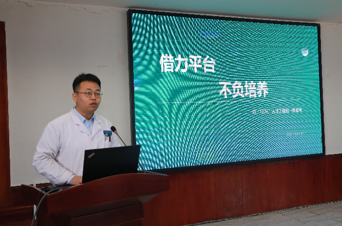 中青年骨干人才张南南、贾博宜分别作为中青年骨干人才代表和博士代表进行发言。向医院、导师表达感谢之情,表示将严格按照培养计划完成培养任务,不辜负医院、指导老师、科室主任的期望!
