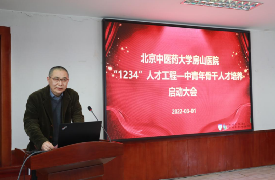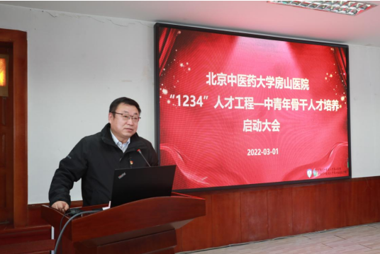 为加强青年人才培养,提升医院可持续发展动力,经深入细致调研后,北京中医药大学房山医院“1234”人才工程—中青年骨干人才培养项目启动大会于2022年3月1日召开。院领导班子、指导老师、首批入选15名中青年骨干人才培养对象及所在科室负责人参加会议,会议由副院长傅春江主持。