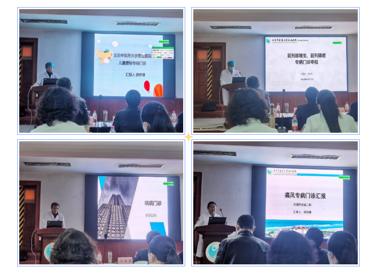 孙鲁英院长开篇提出十四五是中医药发展的重要契机,也是我院发展的良好机遇。2022年度十大任务之一,就是开设专病门诊,其目的强特色,提质量,医院支持各专病门诊树名家风范,打造核心竞争力,更好的服务房山区及京西南群众。随后各答辩科室依次进行汇报答辩,专家提出评审意见。