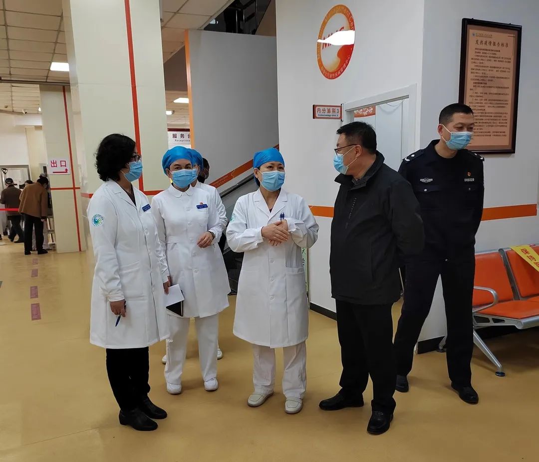 防控领导小组成员分别查看西门分院筛查岗、门诊、住院病区、食堂等各科室的疫情防控措施,并针对规范防控流程、流调筛查、病区陪住登记、第三方人员监管等相关细节检查指导,与医护人员互动交流。