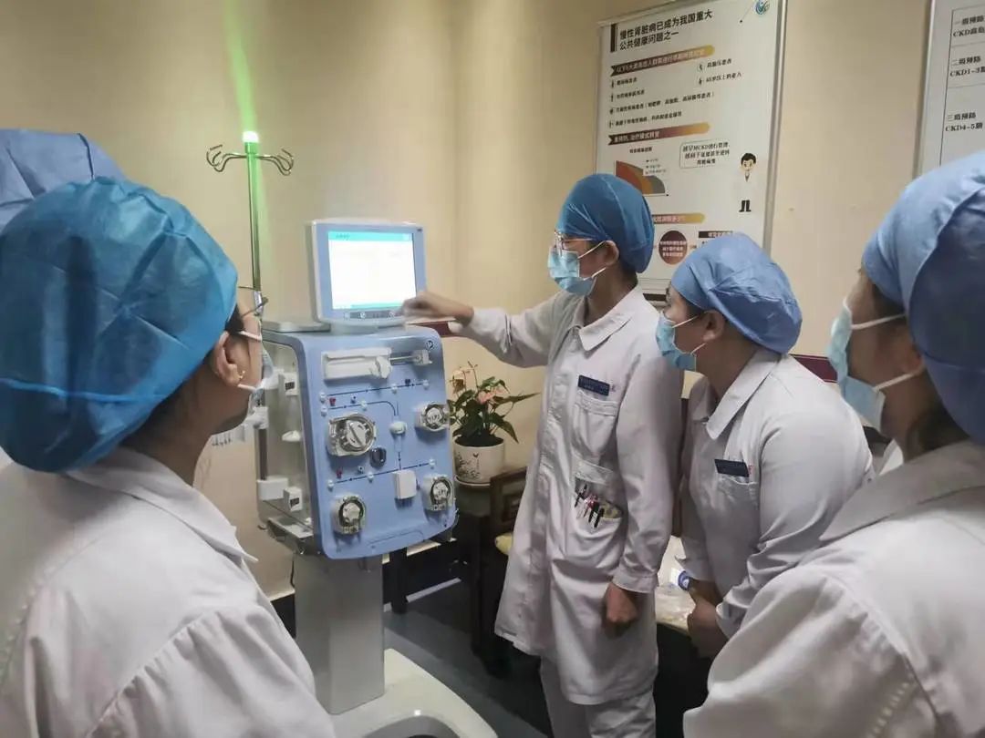 不一会儿,一位干练的女医生走了进来,只见护士姐姐连忙站起来喊到:“主任,您来了。”原来这位女医生是科主任孔令新,她用手拍拍护士姐姐的肩膀说:“小冯,别紧张,首次使用,安全第一,有任何问题,第一时间通知我。”护士姐姐回答:“主任,您放心,我心里有数。”原来护士姐姐早在(2021年12月24日)去过民航医院参观过一次我的工作流程(山外山床旁机器),又在今年3月7日-3月12日期间无数次的在我身上模拟演练过安装、预冲、上机和下机。在工作时我见她不断搜查并整理着新机器的使用流程与注意事项,当时我就决定,以后一定和她和睦相处。
