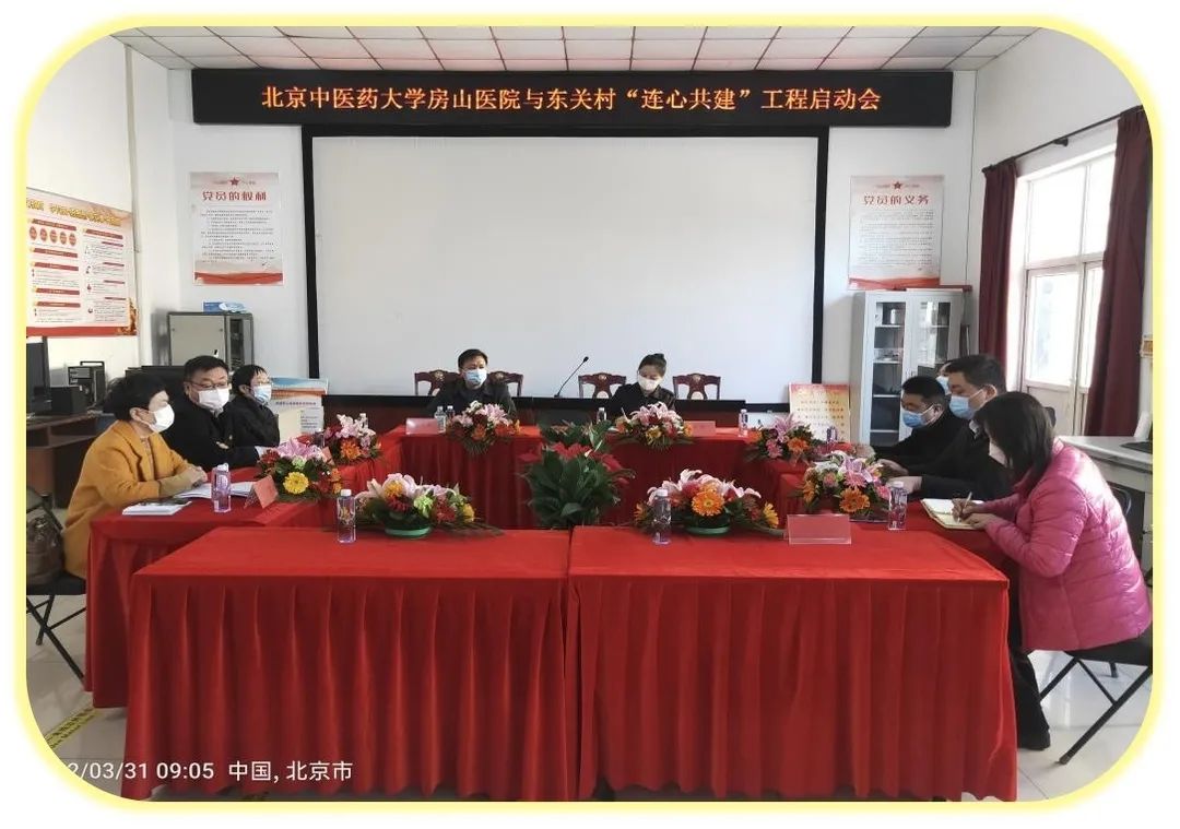3月31日,为贯彻落实中共北京市房山区关于“双联双促”工作,北京中医药大学房山医院与拱辰街道东关村正式启动“双联双促”为主题的新一轮的“连心共建”工程,医院党委书记郭书文、院长孙鲁英等医院领导班子成员,与拱辰街道工委干部赵龙、东关村党支部书记张海等村委会干部一起参加启动仪式并座谈交流。