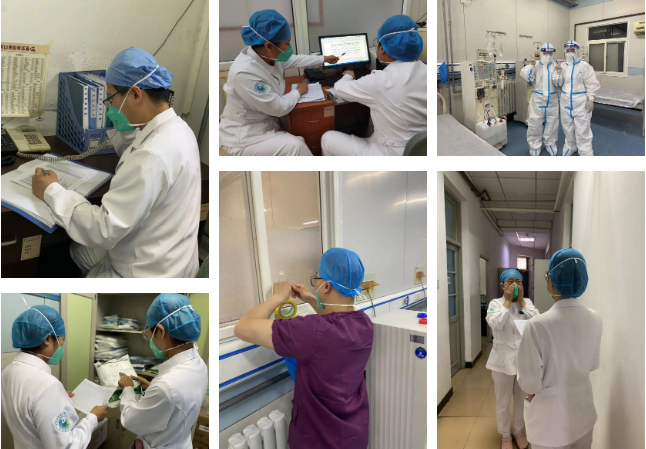 透析患者是一个特殊群体,因患者无尿,不得不每周三次往返医院,是疫情下特殊的“逆行者”。他们中有将近八旬的老人;有反复心衰的冠心病病人;有的病友焦虑异常,需要耐心的解释;有的病友没有交通工具,出行遇到了困难;这就给我们的疫情防控工作带来了巨大挑战,内科第二党支部书记、肾病科主任、血液透析室主任孔令新及血液透析室护士长赵亚红前期仔细研判新冠疫情防疫特点,并结合相关血液净化隔离透析治疗经验,统筹安排,科室制定严密的防控流程和预案,经过多次演练培训,使透析室所有医护人人考核合格,关键信息都熟记于心。我们坚定信心,不惧艰险和困难,全心全意为病患服务。