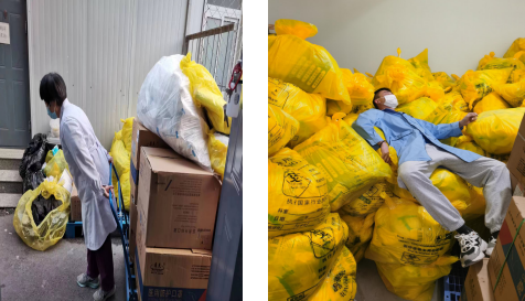 耗材办的同志们虽未身着白色战袍,但他们也是战士!耗材办副主任杨海鸥身先士卒冲在保障医疗物资供应的第一线,连续7天7夜驻扎科室,每天只休息4-5小时,带领耗材办全科人员用责任心和汗水保证了医疗物资的充足供应和及时发放。