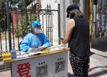 在筛查岗现场,党员干部和职工以强大的凝聚力、向心力和战斗力,确保筛查顺利进行。彩超室宫俊英主任,58岁,带头报名参与筛查工作,为保证筛查质量,提前找到刘护士长熟悉筛查流程要点,到岗后俨如一位筛查老手,“您是从封管控区来的,按照要求需要到发热门诊单间诊疗。”“请您用微信扫一扫功能扫码。”“哦,您是志愿者要给封控区患者开药,请往这边走,我带您对接工作人员。”在宫主任的带领下,彩超室其他两名人员也迅速适应岗位,积极投入筛查工作。