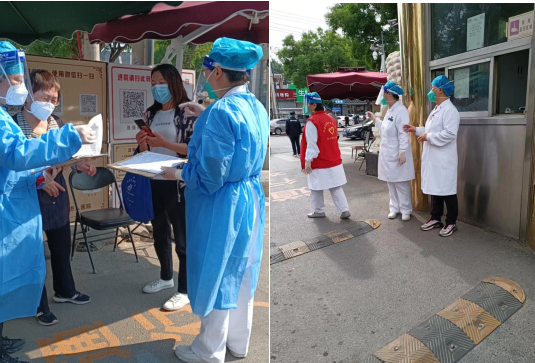燕山分院党支部得知筛查岗人员告急的消息,立即派出马连峰、孔德华、李伟俊、杨文超四名同志,路远公交停运,没问题!骑一个小时电动自行车也能到岗;家属被隔离,没问题!把孩子寄养在亲属家也能到岗;社区临时管控,没问题!医院开返岗证明自己签署承诺书也能到岗!克服种种困难我们准时到达。