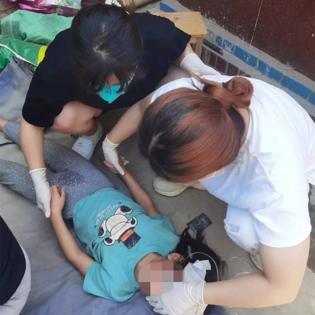 说起事件的经过大概是这样的:5月22日12时多,路村村委会工作人员成光明对照核酸点名台账发现,平日里一早便会来做核酸的成*虎一家迟迟未到,便打电话询问情况,几次未接听。成光明察觉有异,到其家中查看,竟发现成*虎一家四口(包括其子和两个孙女)都已不省人事,并闻到浓浓的煤气味,马上报告了村党支部书记王永新。得知消息后,正在午休的李茜、郝丹立即与琉璃河卫生院护士王鹏一同随村党支部书记前往现场,镇卫生院医生王晓东也紧急赶赴现场。经初步判定,一家四口为煤气中毒。四名医护人员迅速指挥村委会人员将村民抬到院内通风阴凉处进行了心肺复苏和人工呼吸,同时拨打120联系救护车。在得知一家四口处于缺氧状态后,王永新又从其他村民处借到两套制氧机继续进行抢救。直至13时30分左右,4人意识恢复,由120送至医院进一步治疗……
