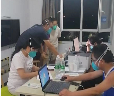 我们同事10人分别来自月华、东岭、西门3个分院,虽然同在一个医院工作,平常素不相识,而且都没有隔离点的工作经验,身为队长,感觉身上的担子千斤重。到达隔离点后,经了解这里是一座烂尾楼,多种基础设施需要完善,当晚便出现电梯停运,停电,8层以上没水,这些问题经过积极抢修,尚可以解决。我们虽然经过岗前培训,但没有临床实践,大家还是一头雾水,此时却接到通知,要求尽快接收隔离观察人员,时间紧,任务重,大家迅速放下简单的行囊,立即投入到紧张的准备工作中,向前期到达的同仁学习工作流程,检查房间是否具备入住条件,检查物资配备,作为队长,要让相互陌生的同事尽快相互了解,做到团结协作,默契配合,劲往一起使,才能高质量完成工作。我们24小时待机,随时准备接收隔离观察人员,随时协调解决红区出现的各种问题,回答隔离观察人员的各种疑问,尽全力去解决,面对完全陌生的工作内容,责任如此,必须勇往直前,克服一切困难。吃饭变得没点,睡觉变成奢侈,经常是紧攥手机,声音调到最大,和衣而卧,铃声一响,双眼瞬间睁开,恐怕错过任何一条信息,耽误工作,时刻保持着工作状态,在紧张忙碌的工作中,有很多感人的难忘时刻令人忘怀。