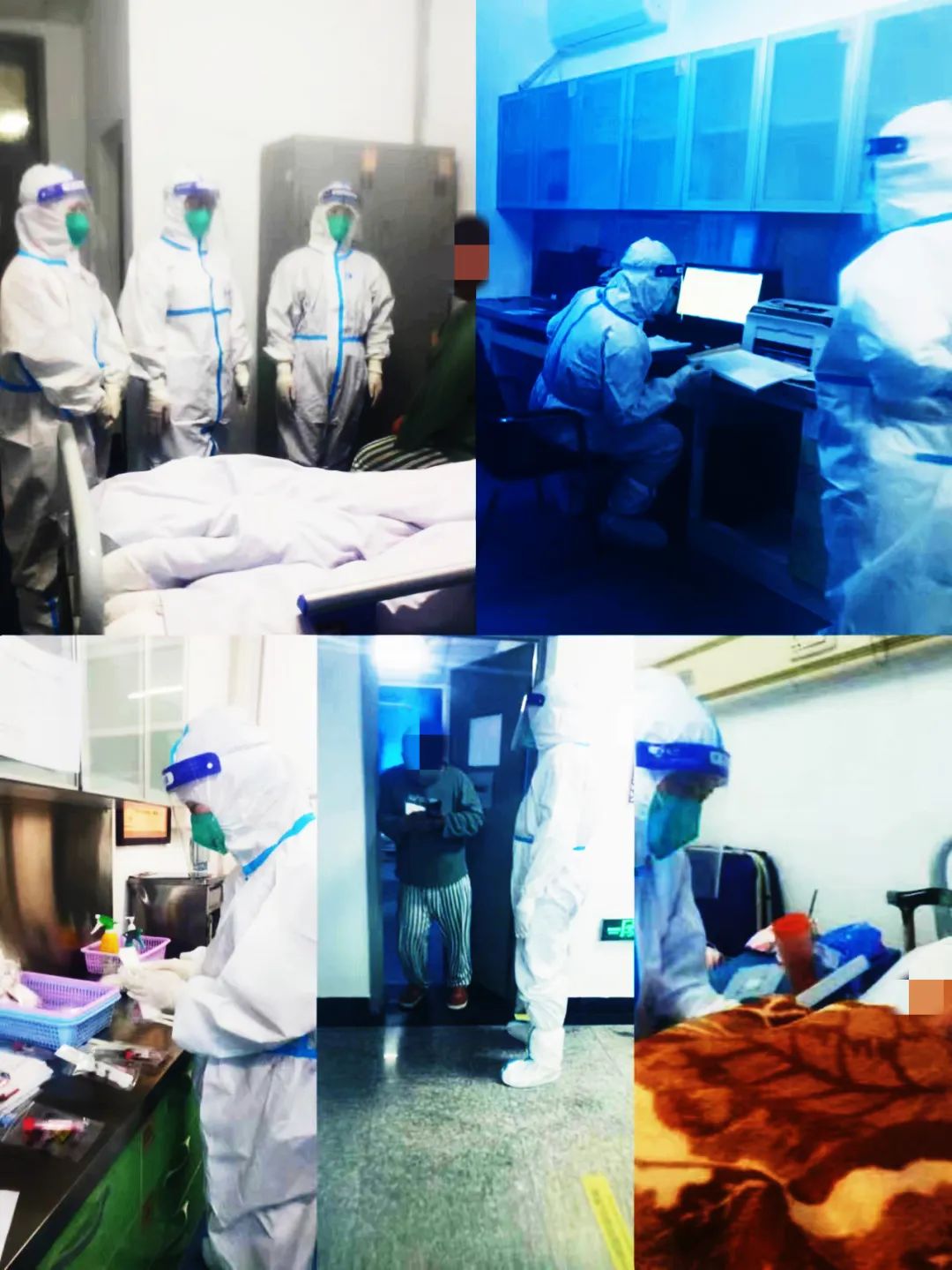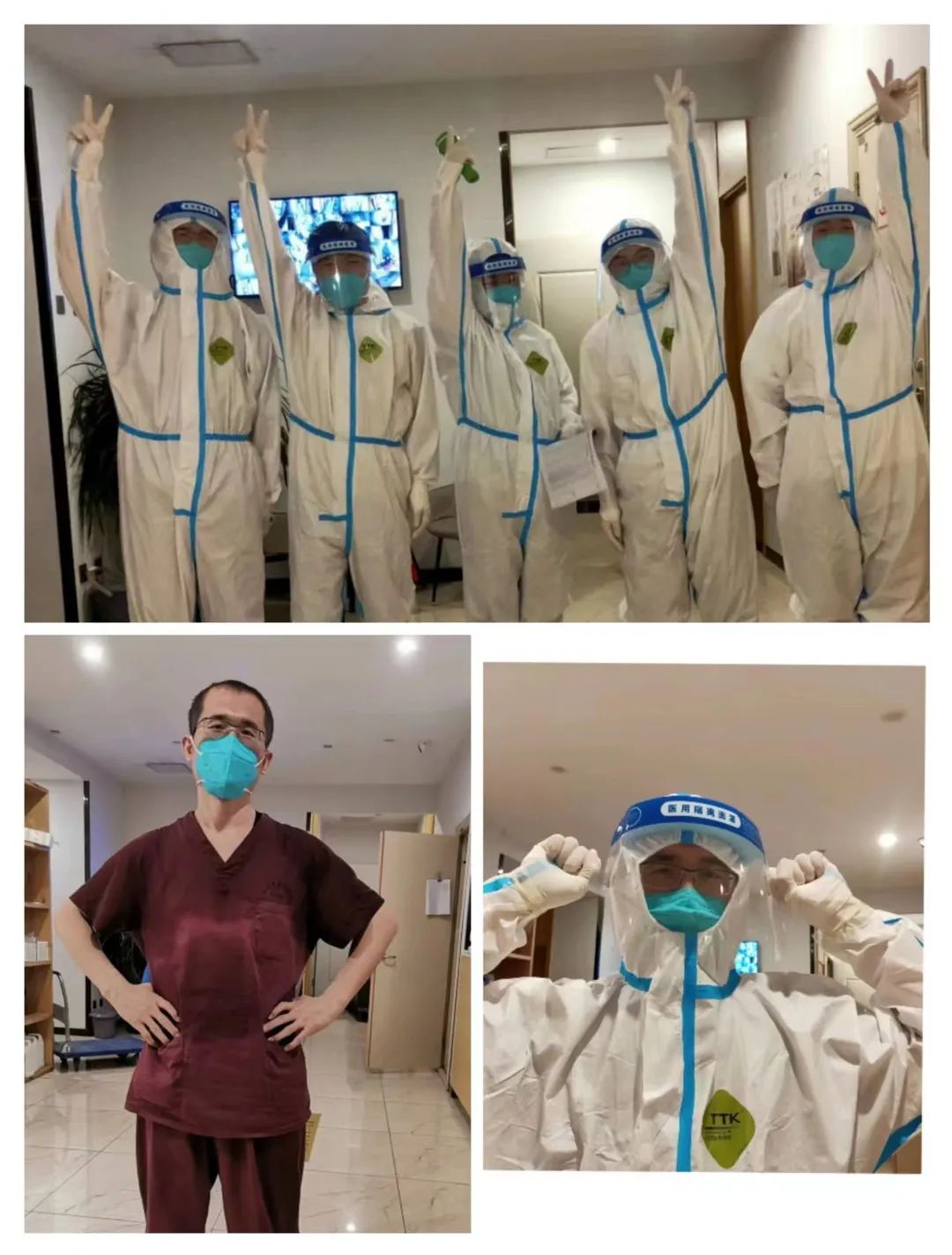 东岭分院陆续又派出张义松、刘海超等5人支援到隔离点工作当中去,他们没有犹豫,没有畏惧,舍下小家只为贡献自己的一份力量。当医院筹备发热病房时,即使人员紧缺,东岭分院仍第一时间支持医院新病房建设,号召分院广大党员干部职工积极投入到新病房建设中去。青春正当时,奋斗无止境,要世好、宋雪彤、王金昱、陈梦杰、郭文龙、贾翠娟刚从核酸采集点下来,立马被抽调到发热病房。她们为了节省物资,就是早上喝上一口水,中途不敢再喝水,防护服一穿半天不能脱,夜班更是一宿不敢脱,饭菜送来时,忙起来根本吃不上,等能吃上饭时已经凉透了,没两天下来,她们有的肠胃开始紊乱,有的胳膊出了痱子,可他们为了新病房顺利开展,自己咬牙也会挺住,绝不会因为自己耽误新病房的运行。