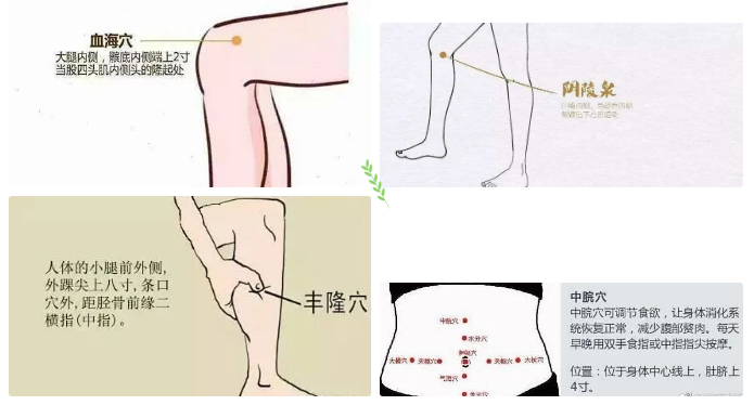 健脾除湿的穴位:血海、阴陵泉、丰隆穴、中脘穴。