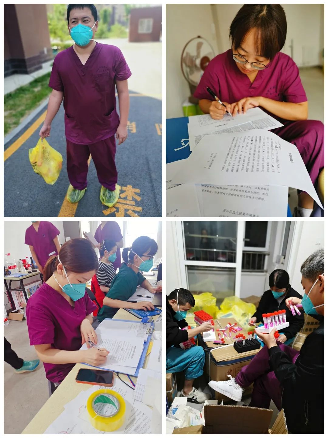在这里,隔离人员被单独隔离在房间内,面临很多生活保障,物资配给,核酸采集,抗原检测,健康管理,心理关怀等方面的问题,医务工作者秉承科学精准救治,以医者仁心,高度责任的态度,敬佑每一个生命,隔离观察人员中,上有合并基础病的高龄老人,下有咿呀学语的幼童,还有聋哑人及需要规律血液透析的患者,我们不仅要做好隔离期间常规的核酸采样、体温检测、网报信息,还要关注突发的健康问题,与此同时隔离点儿入住人员心理压力普遍较大,我们会利用微信、电话等形式耐心安慰鼓励他们,帮助他们树立战胜疫情的信心,每次透析患者回来身体都跟虚弱,一份盒饭都不够吃,他们怕给我们医护人员添麻烦不愿跟我们反应,经我们反复询问才得知此情况,立即把自己仅有的方便面、火腿肠等送给他们,并立即向生活保障负责人反应给透析人员多准备一份盒饭!每天三次电话回访透析人员,随时掌握他们的身体情况及心理变化!短短几天,便赢得了隔离人员的认可和肯定,隔离人员常常对我们说:“谢谢你们的付出,大白辛苦了”!