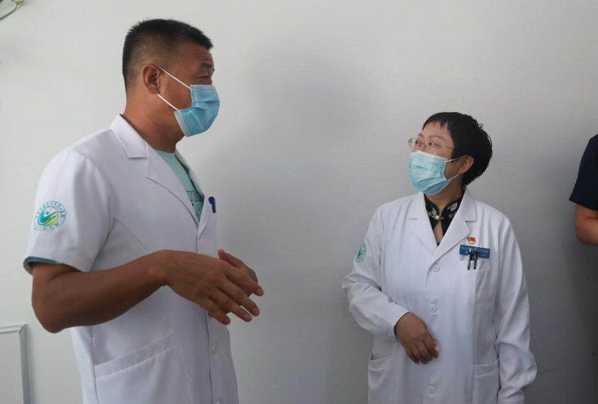 随后,在孙院长的主持下,张士朋主任带领医学影像中心骨干和科室代表,将工作中的困难和意见建议进行了汇报,院领导现场办公,对医学影像中心日常工作及科室发展中存在的疑惑和困难进行了一一沟通和解决,并指定相关科室负责人立即落实。医务科对医学影像中心在疫情防控工作中的表现给予充分肯定,并要求在今后的工作中,要把责任心充分发挥出来,保证医疗安全;设备科要求医学影像中心对设备的维保制度要落实到位,做到定期维护;总务科还对各设备以及日常电器用电安全进行了叮嘱。