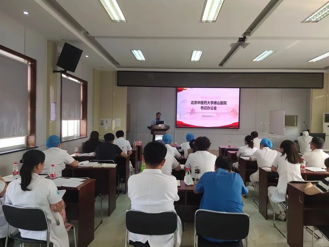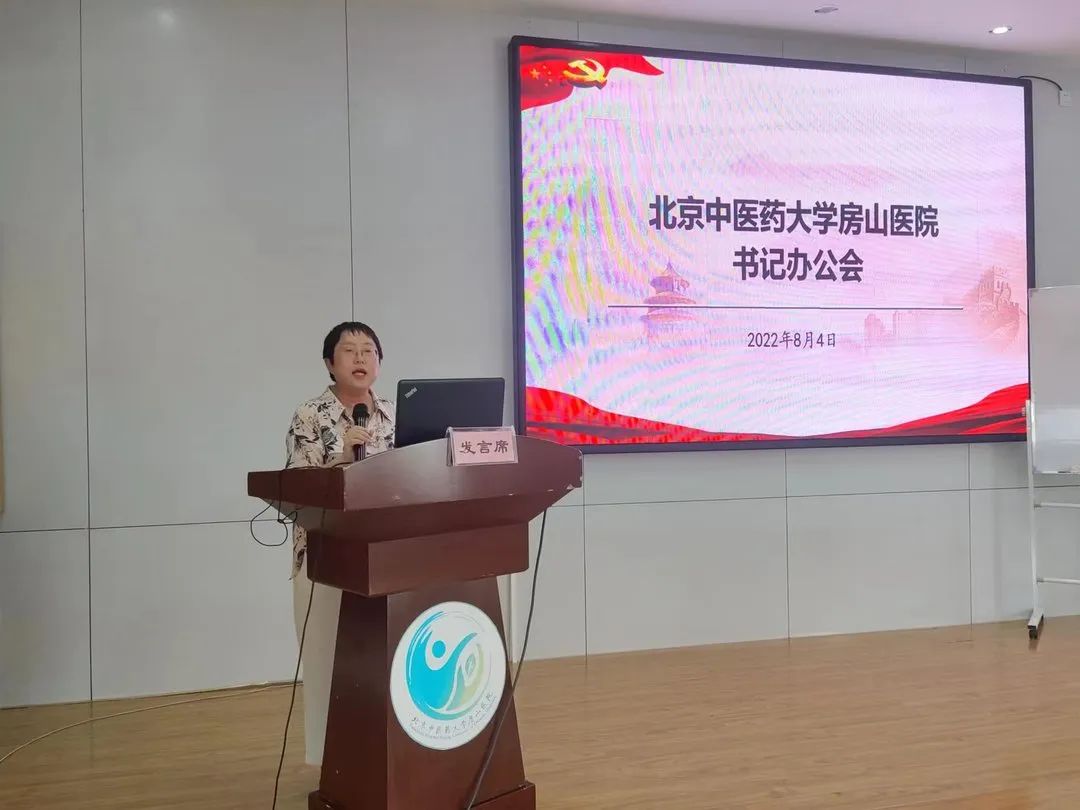 8月4日,北京中医药大学房山医院党委在西三楼会议室召开了书记办公会,院党委领导、21个党支部书记参加会议。此次会议由党委副书记栗桂松主持。