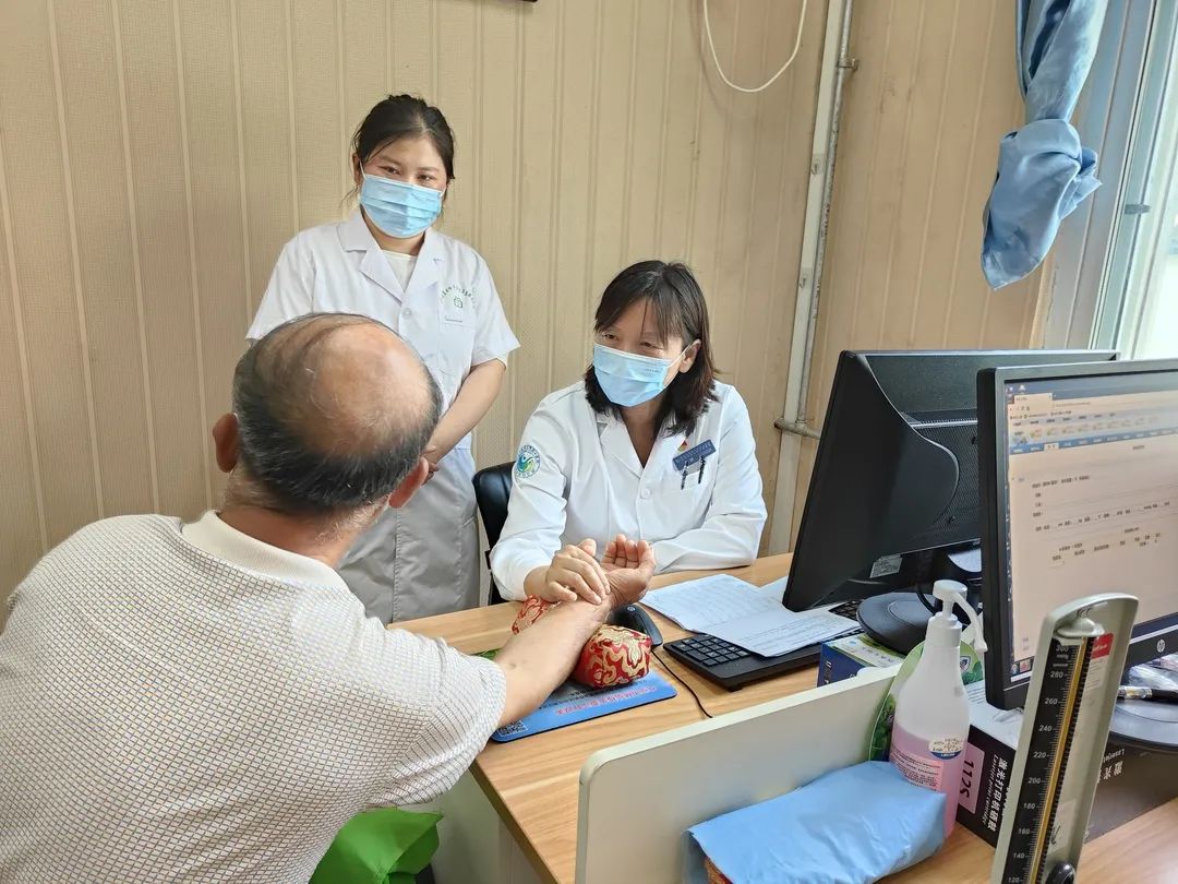 为银水村的患者看完病之后,大家又匆忙赶到霞云岭卫生院,为早已等候在卫生院的患者诊治,时间就在紧张的忙碌中飞快的过去,大家顾不得头上的汗水,也顾不上喝一口水,看着排队的患者,看着他们期盼的眼神, 只想尽快为他们解除病痛。