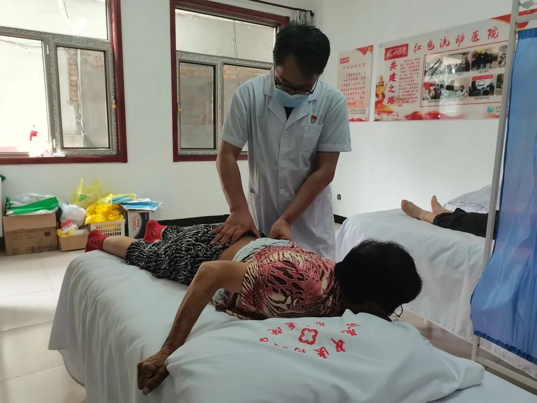 王良文主任擅长康复及针灸,他为因患关节疾病行动不便的患者做推拿及针灸治疗。