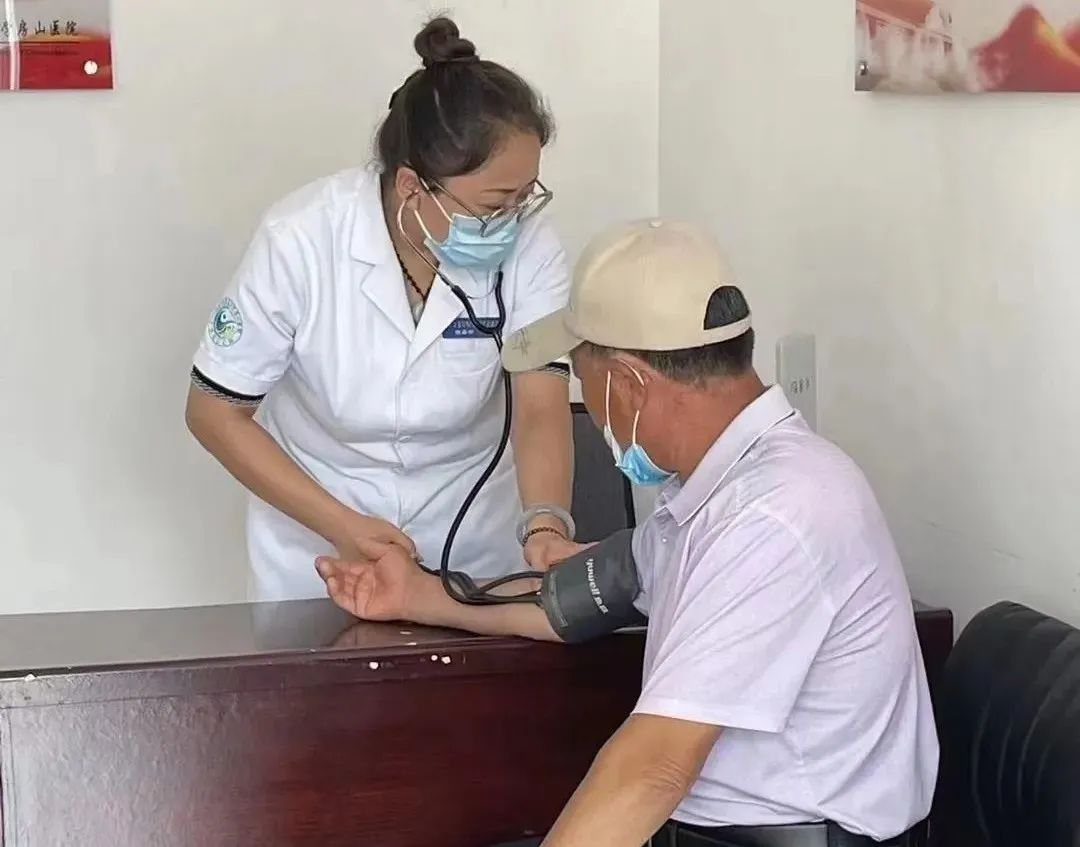 徐美娜主管护师除了安排好病人外,还负责为患者测血压、血糖。