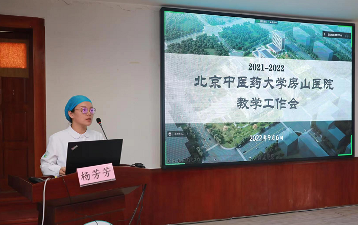 北京中医药大学房山医院副院长、教学主管院长张红进行了年度教学工作总结以及下年度工作思路汇报。张红副院长从“以教学质量为核心,提升教学内涵建设;以解决问题为导向,推进住培快速发展;以继续教育为抓手,发挥学科引领作用;以各级项目为主体,完善区域传承体系”四个方面以及下年度工作重点进行全面汇报。