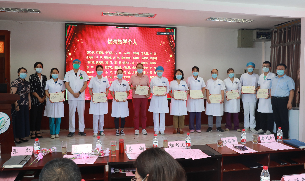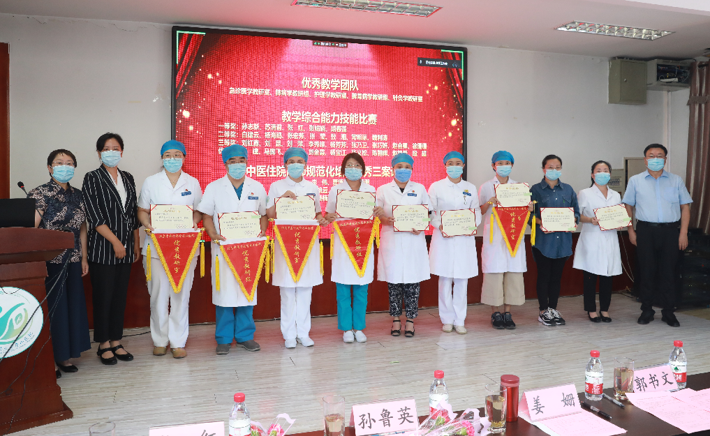 北京中医药大学房山医院党委副书记张士萍宣读了年度优秀团队、个人表彰文件及教师比赛获奖通知,北京中医药大学教务处副处长姜姗与院领导共同为优秀团队及个人代表颁发荣誉证书和流动红旗,并向所有获奖老师表示最热烈的祝贺和感谢!