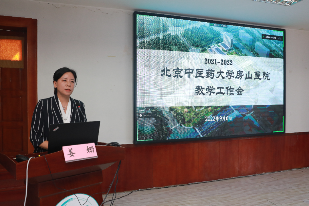 北京中医药大学教务处副处长姜姗对医院教学工作给予充分肯定,面对种种挑战,临床教师们迎难而上,圆满完成各项教学任务。同时,姜姗副处长也对我们提出了更高的要求,面对更加繁重的教务工作,希望我们在新的学年继续砥砺前行,再创佳绩!