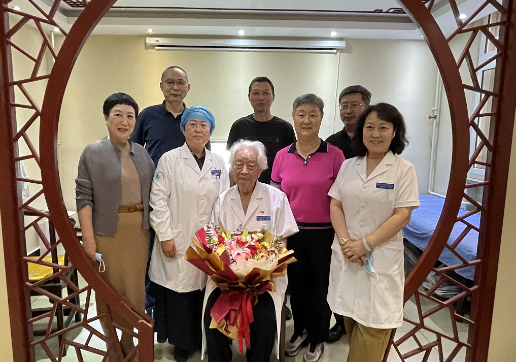 “首都国医名师”韩臣子在培养中医人才方面付出了颇多心血,值此教师节来临之际,北京中医药大学房山医院院长孙鲁英等院领导班子一行人到杏林苑专家门诊,为韩老送去了节日祝福。孙院长亲手将鲜花送至韩老手中,感恩韩老传授后辈知识,祝愿韩老身体健康。