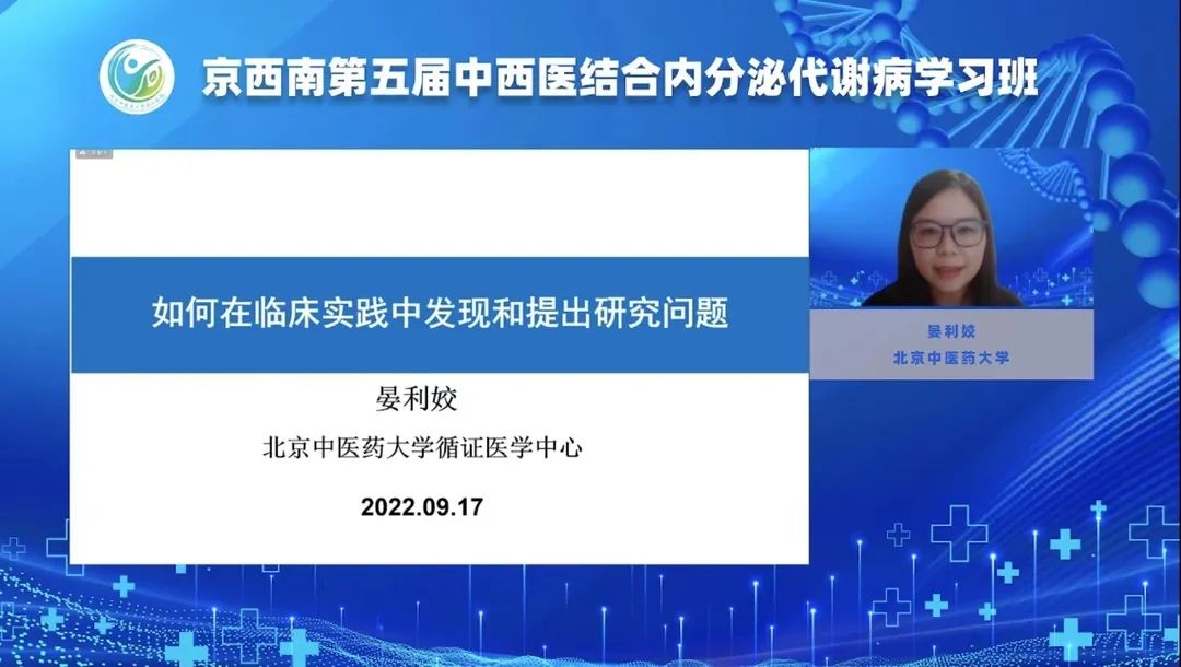 科研是促进学科建设和培养高素质医学人才的需要,北京中医药大学晏利姣博士带来了《如何在临床实践中发现和提出研究问题》的精彩授课。
