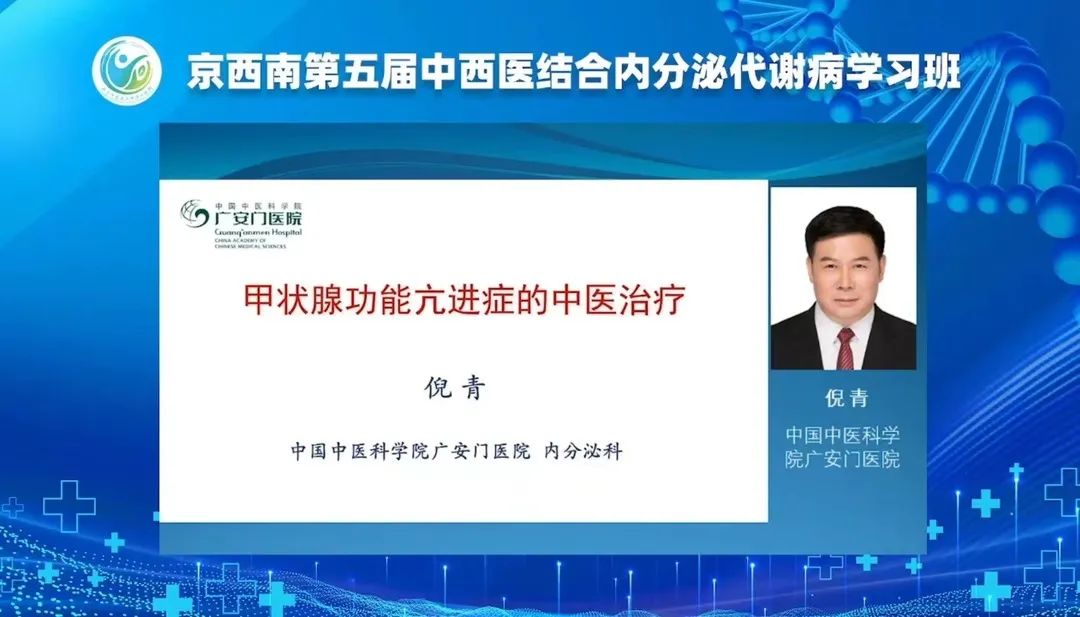 国家“有突出贡献中青年专家”、享受国务院“政府特殊津贴”的中国中医科学院广安门医院内分泌学学科带头人、倪青教授带来《甲状腺功能亢进症中医治疗》的精彩讲述。