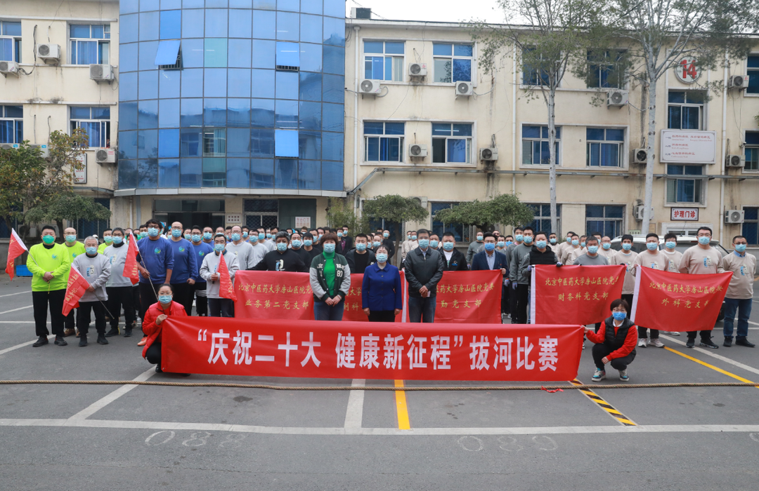 金秋十月,秋高气爽。党的二十大在北京胜利闭幕,党的二十大报告中提出“推进健康中国建设,把保障人民健康放在优先发展的战略位置”,全面推进健康中国建设,大力推进全民健身运动,积极引导广大职工追求健康向上的生活方式,2022年10月27-28日,北京中医药大学房山医院党委、工会、团委联合开展“庆祝二十大 健康新征程”拔河比赛,医院职工260余人参加。