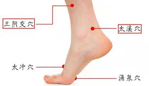 另可以按揉三阴交、太溪、涌泉穴等穴位。涌泉穴为少阴肾经穴位之一,位于足底,在曲起足趾时足心最凹陷处,有滋阴益肾的作用,可以早晚起床、睡前按揉5-10分钟,以酸胀适宜为度。
