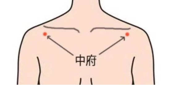 中府属手太阴肺经,为肺之募穴,在胸前壁外上方,前正中线旁开6寸,平第1肋间隙处。中府是肺经的起始穴,也是十二经脉气血流注的起始点,具有止咳平喘、清泻肺热、宣肺平喘的功效,同时又因中府穴与足太阴脾经交会,因此具有补气健脾的功效。可每天按揉中府穴,先顺时针再逆时,每次按揉3分钟左右,可补益肺气。