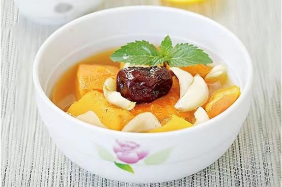 材料:鲜百合2颗,小南瓜1个,红枣约10粒、枸杞若干。冰糖适量