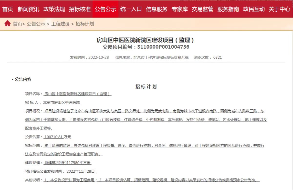 原文链接 https://ggzyfw.beijing.gov.cn/jyxxgcjszbjh/20221028/3601486.html