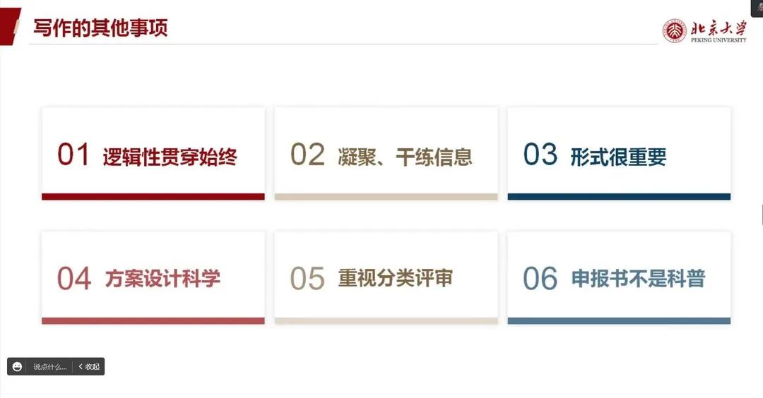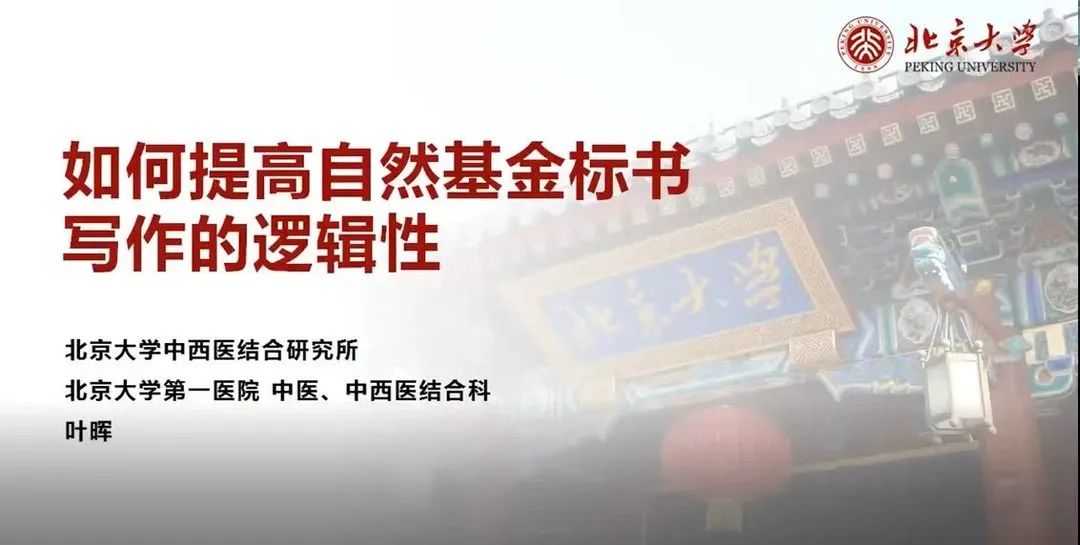 本次在召开国自然启动会议的同时,邀请了北京大学中西医结合研究所、北京大学第一医院叶晖副研究员,围绕如何提高国自然标书写作进行线上经验分享,培训主要针对标书撰写的逻辑性、研究框架的建立、研究基础的撰写方法以及实际案例分析进行拓展,同时提醒在申报过程中注意如何解决科学问题的逻辑性。