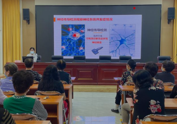 主治医师袁名泽、护士张稳分别以线上宣讲的形式,分享糖尿病酮症酸中毒的相关知识,讲解糖尿病患者的皮肤和口腔护理,助力糖尿病患者更好地治疗糖尿病、避免并发症,最大程度地享受接近常人的幸福生活。