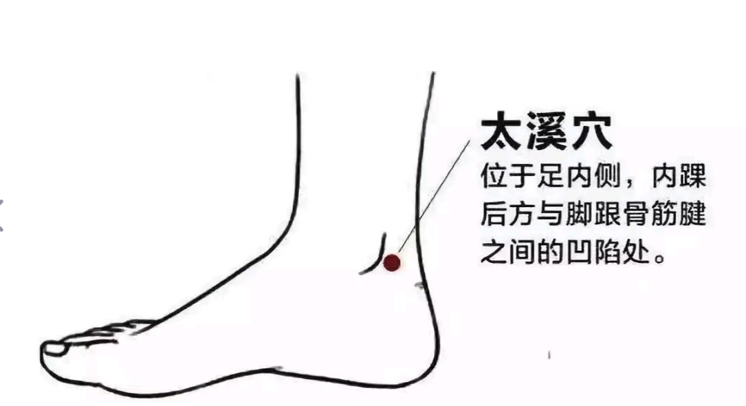 按摩保健。太溪穴是肾经上的原穴,原穴是指源头,生命的原动力。每天坚持揉按刺激太溪穴,能调动气血,使气血上达于面,下行于足。