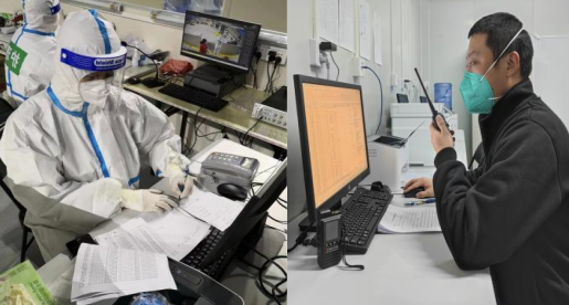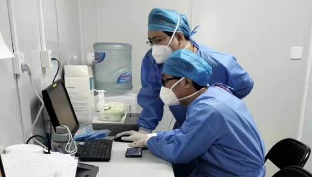 丰超心血管内科主治医师、王光华中西医结合主治医师,他们来自房山区第一医院,有着丰富的抗疫工作经验,丰超医生谈吐幽默,进入方舱红区总是用他的语言安慰患者焦躁情绪,一个班6小时确认患者床位号。王光华医生负责绿区的医疗信息,方舱第一天收治病人,他一宿没睡逐一报传染病卡。